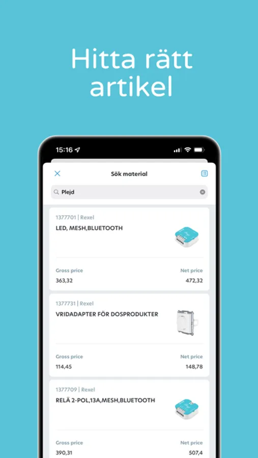 Mowin is easy to integrate with both ERP systems and electrical wholesalers (EDI), which means that you reduce your administration and get full control of all assignments and projects. You can create your order directly in the queue at the wholesaler, and all purchased materials become immediately visible on the work order. Always with price comparisons and updated price lists.