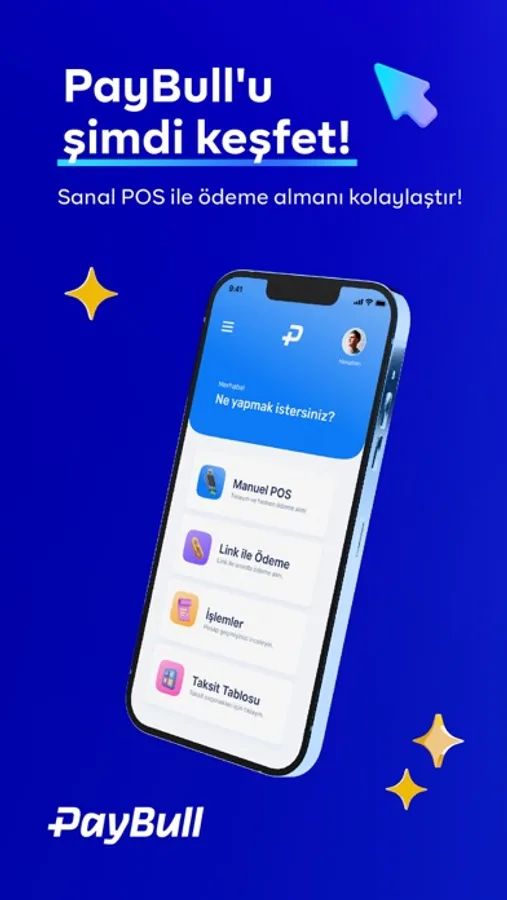 PayBull uygulaması, e-ticaret şirketleri, bireysel kullanıcılar, B2B iş modeliyle çalışan firmalar ve pazar yerleri için sanal pos ve güvenli ödeme çözümleri sunar. PayBull uygulaması sayesinde tüm bankalarla tek tek pos anlaşması yapmanıza gerek kalmaksızın entegre olabilir ve tüm kart programlarından ödeme alabilirsiniz. PSI - DSS güvenlik sertifikalı PayBull uygulamasını hemen indirin ve hiç bir kurulum veya aylık/yıllık sabit ücret ödemeden 24 saat içinde dünyanın her yerinden hızlı ve güvenli şekilde ödeme almaya başlayın. Üstelik ister taksitli ister tek çekim seçeceğiyle.