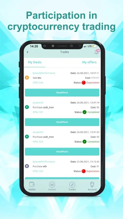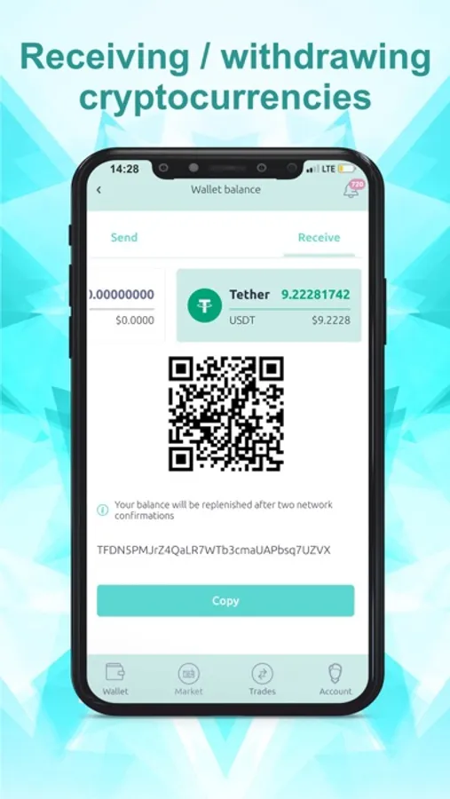 The application allows you to have a multi-cryptocurrency wallet to perform secure operations with any cryptocurrency, including BTC/ETH/USDT. Users, regardless of their location, get the opportunity to safely sell, buy, exchange cryptocurrency. The application allows you to send, receive, and also store it in your account. No commission is charged for performing operations, because the service is considered the most profitable.
