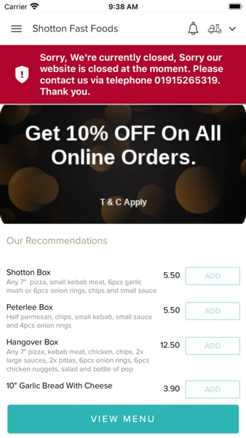 Please feel free to browse our app and to order online. You will be able to get up to date prices and special offers online. Thank you for visiting Shotton Fast Foods in Shotton Colliery. We hope you enjoy our online ordering app and your food.