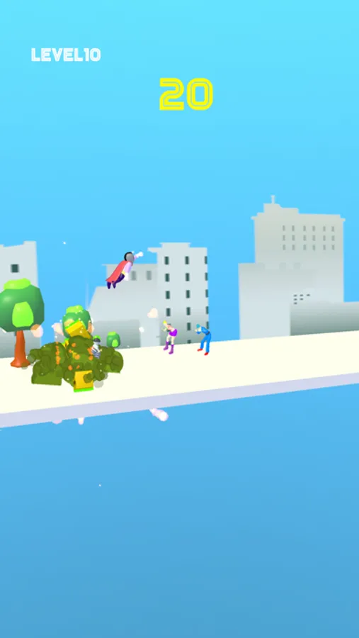 Our superhero needs your help to destroy the enemies in the city. In order to be successful, our hero, who is floating in the air, must approach the ground with the right timing and destroy the enemies. But be careful, because if our hero hits the ground or can’t avoid from the rockets approaching to him, you will fail. When you come to the end of the level, you must rapidly tap the screen to power up and destroy as many blocks as possible.