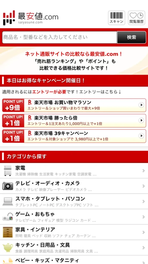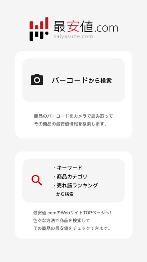 Amazon・楽天市場・Yahoo!ショッピングなど大手通販サイトの価格比較アプリ。