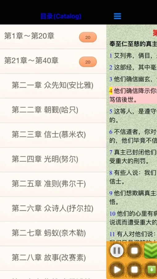 本應用是古蘭經的中文語音版,是您聆聽古蘭經的好工具。