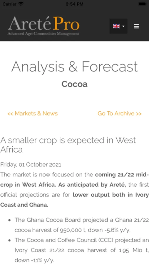 AretéPro is the app that brings at your fingertips Areté’s agrifood commodities market analysis and price forecasts.
