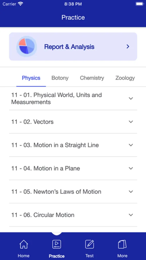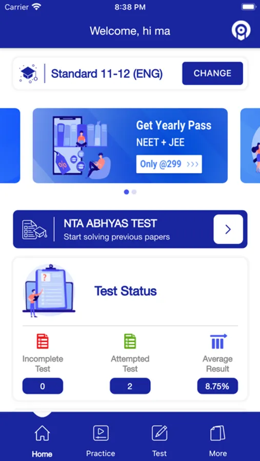 - Custom practice test with the ability to select time and number of MCQs for JEE, NEET exams.