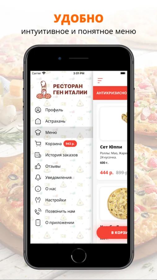 Приложение Ген Италии — это удобный способ заказа еды домой или в офис! Мы готовим наши блюда из качественных свежих ингредиентов и доставляем еду быстро и бережно.