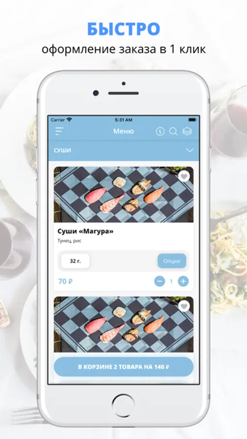удобная корзина и быстрое оформление заказа,