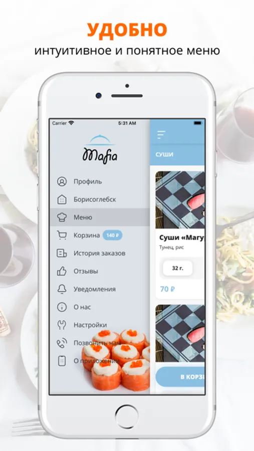 Приложение Мафия | Борисоглебск — это удобный способ заказа еды домой или в офис! Мы готовим наши блюда из качественных свежих ингредиентов и доставляем еду по городу Борисоглебск быстро и бережно.