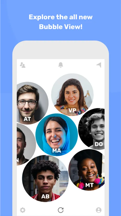 Say goodbye to boring old grids, lists, cards, and tables! Explore the all new, super fun, and intuitive Bubble View. People you see in your field of view will pop up as interactive floating bubbles. With an integrated hyper-realistic physics engine you can drag the bubbles around and tap on them to open a profile. The closer the person is to you in the real world, the bigger their bubble appears on your screen! Tap and hold on a bubble to explore more options!