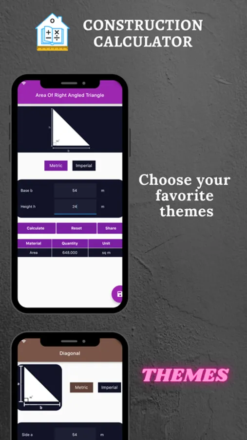 Construction Calculator all in one pro can calculate with the Imperial Measurement System & Metric Measurement system.