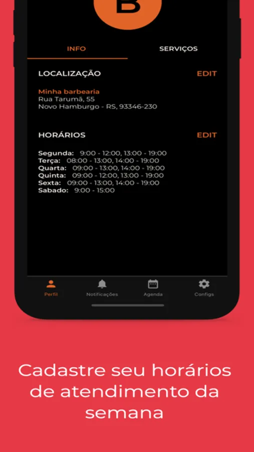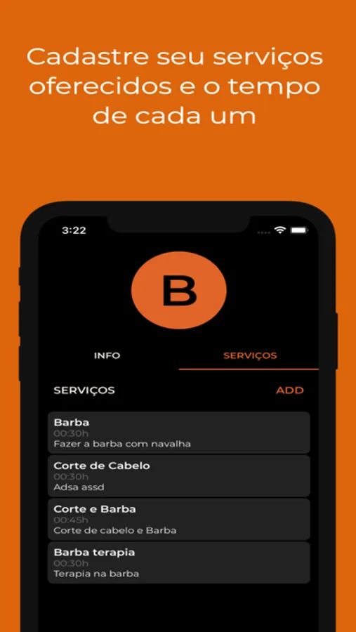 - Cadastre seus serviços oferecidos e o tempo para cada.