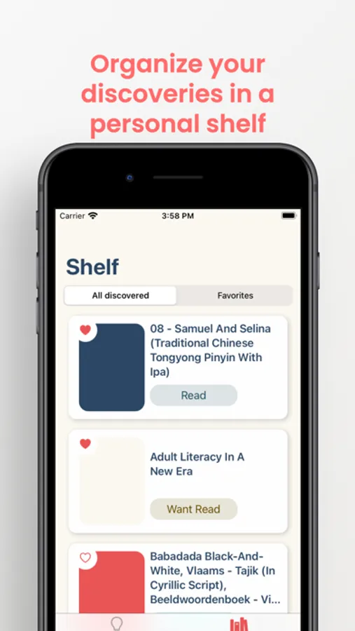 - A personal shelf: To save the books whose synopsis interested youConsulte sua estante pessoal de descobertas e favorite as descobertas de sua escolha.