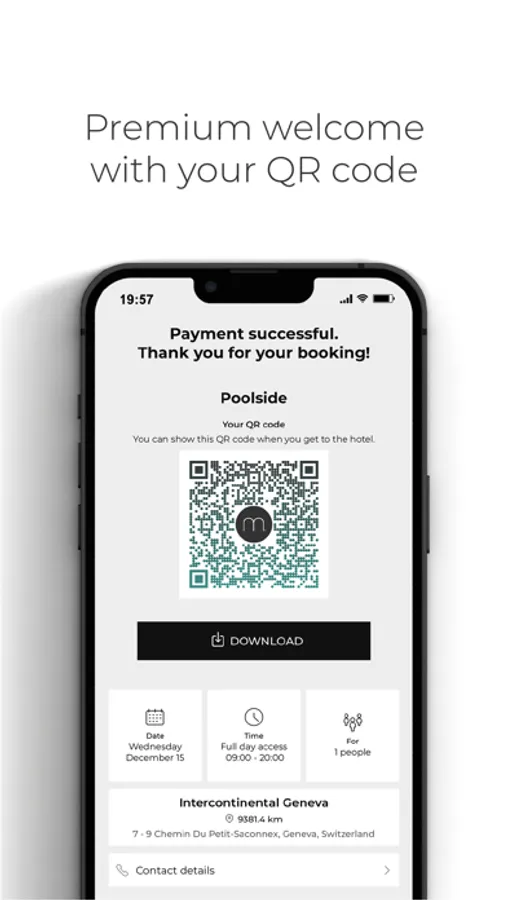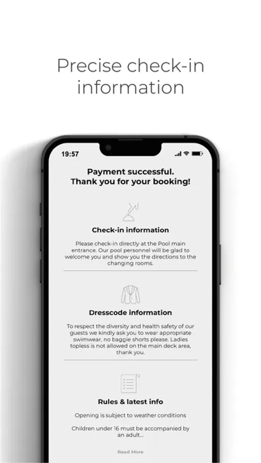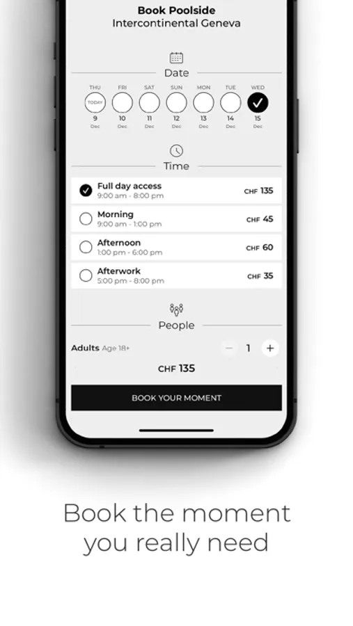 • Spa: reserve access to common areas: Sauna, Hammam, baths, quiet room, swimming pool, etc.
