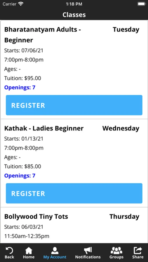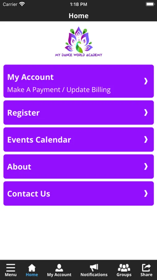 My Dance World Academy app allows you to manage your account with ease, register for classes and recitals. You'll also receive important notifications about class changes, closings, registration openings, special announcements, and upcoming events.