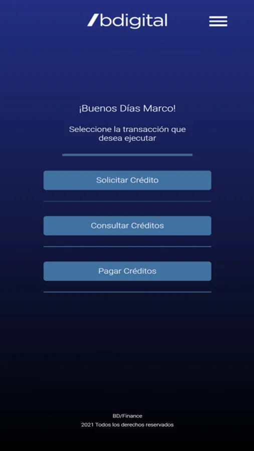 Solución de banca por Internet enfocada a la autogestión de créditos que permita a los clientes de su BD/Finance, auto servirse electrónicamente de los servicios financieros de otorgamiento de créditos de una forma segura, eficiente, novedosa y sencilla.