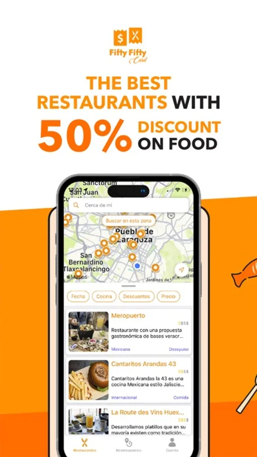 Download Fifty Fifty today for discounted dining experiences and half-price meals in the best restaurants near you. Be part of our growing community in CDMX and Puebla, with new cities launching soon!