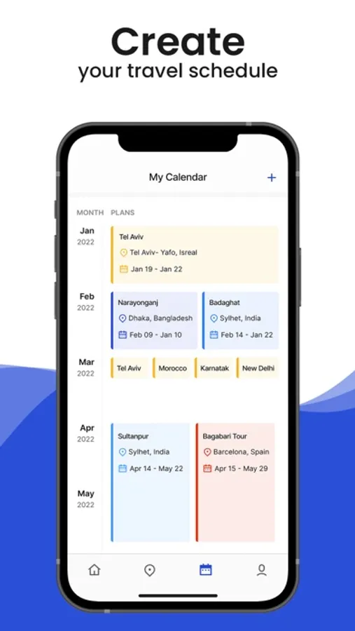 You are able to build out your travel calendar for as far in advance as you would like. This calendar can be seen by all of your friends so they know what you're up to. You can also check out their calendar.