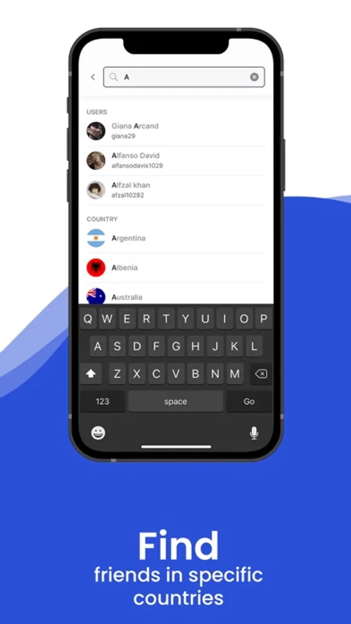 Search for plans in a specific country to see all your friends who are currently in that country or will be on future dates.