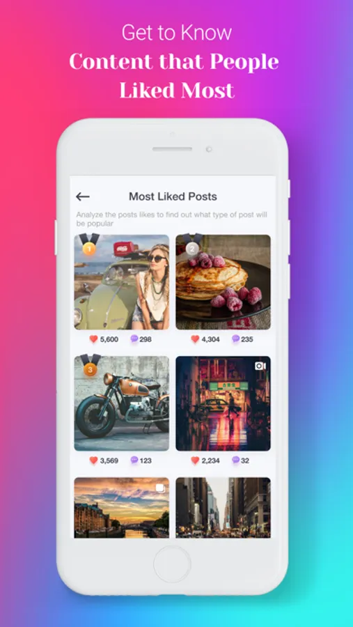 - Quickly view your most active followers by listing the followers who like your posts most and the followers who comment on your posts most.
