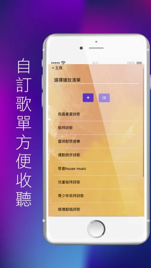 3. 自訂歌單:自訂不同歌單,按需要把詩歌分類,方便收聽及使用。
