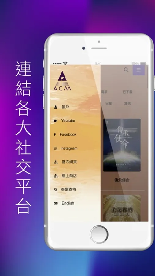 8. 連結平台:連結ACM官方網頁網、網上商店及各大社交平台專頁。