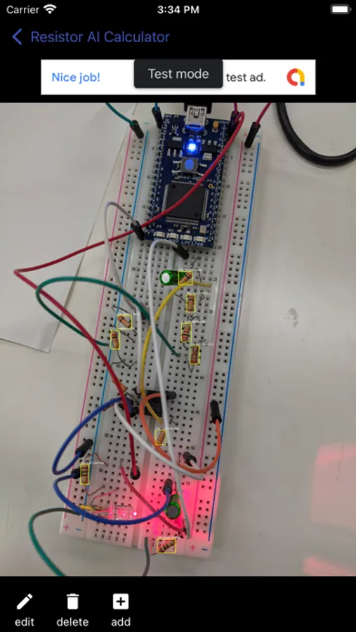 Hold your smartphone over the resistor, and detects the object in real time and calculates the resistance value. Currently, only carbon film (brown) resistors with 4 lines and a margin of error of ± 5% (gold) are supported.