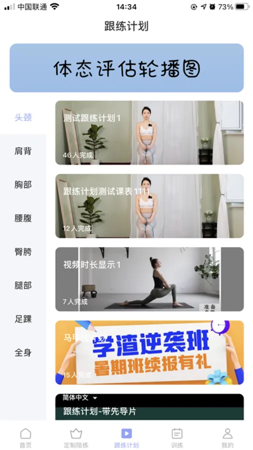 -跟练计划,根据个人的评估报告,推荐针对性的跟练课程