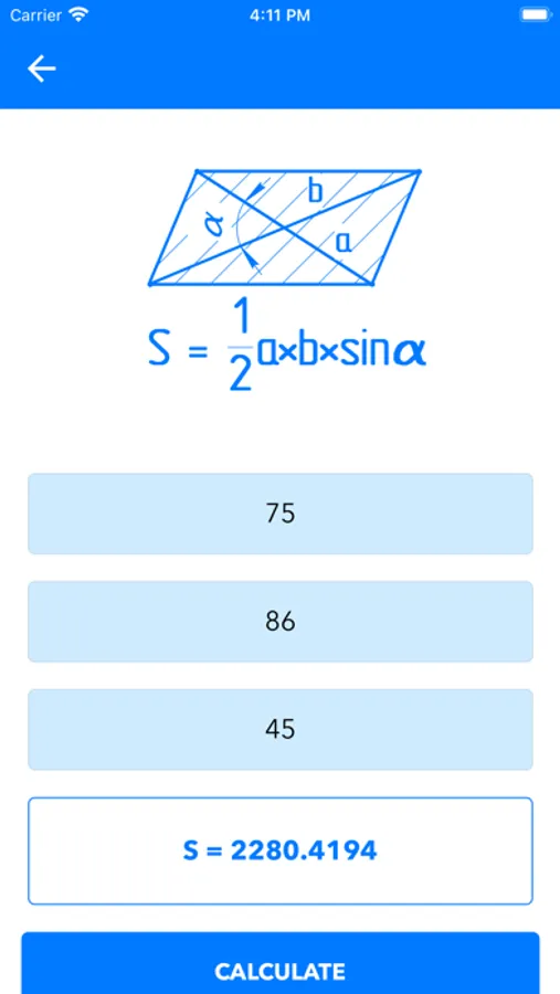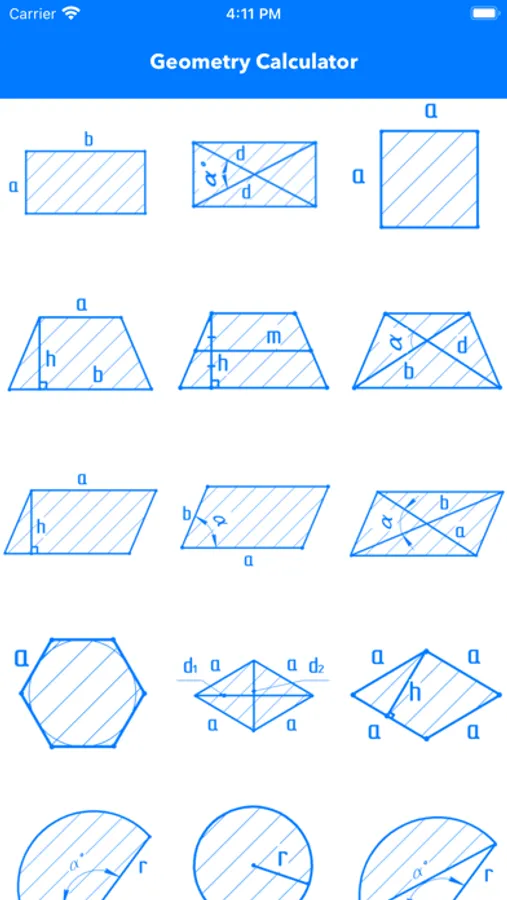 This app lets you easily calculate the length, angle, or area of a geometric shape. Include summaries of mathematical equations for calculations in geometry.