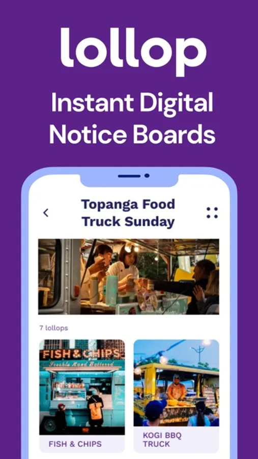 Lollop is a digital notice board for your business, event, rental property, boat, spaceship, or wherever you need it most.