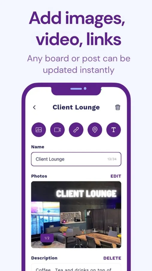 - Attach useful media like URLs, YouTube clips, photos, or videos.