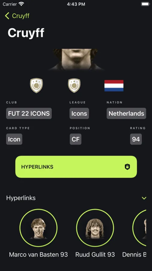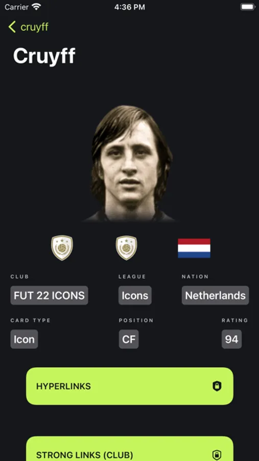 • Find different links for the player you search. Links including hyperlinks, strong club and league links as well as nation links.
