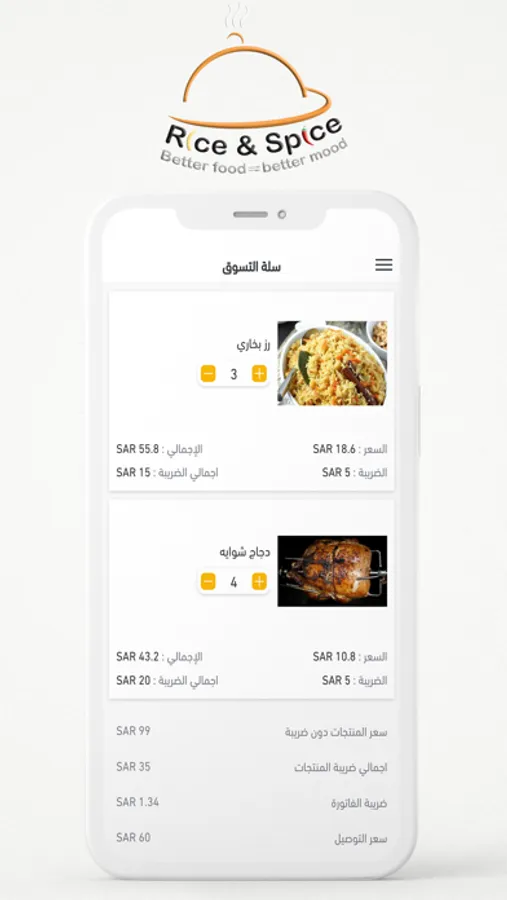 • تصفح قوائم الطعام المختلفة مع وصف لمكونات الأطباق مع عرض الصور و إضافة الأطباق لسلة الشراء.