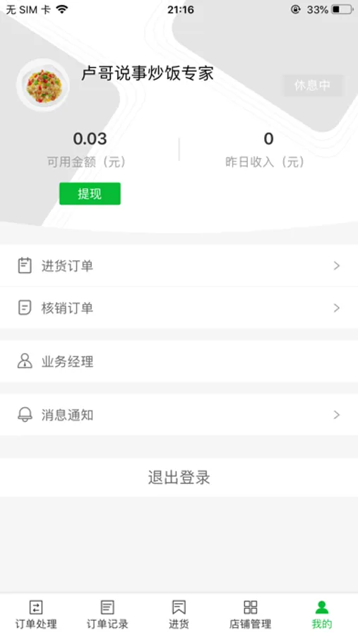 一款商户端app 用于查看用户下单的情况及进货等