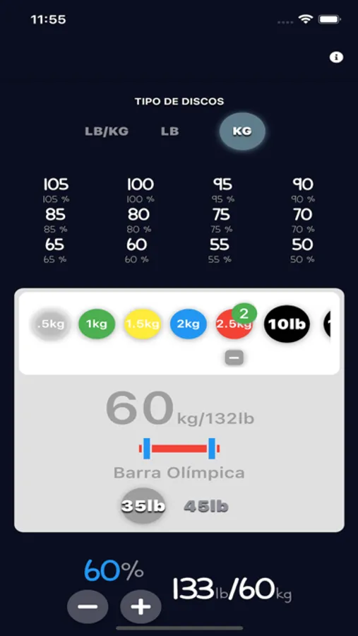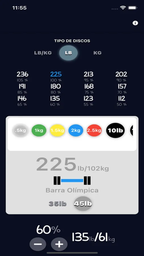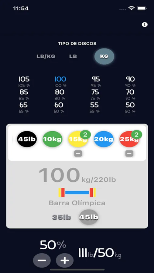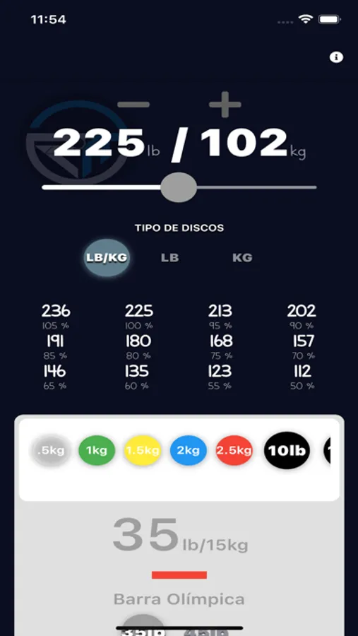 Al presionar en un peso, la app te indica exactamente cuales son los pesos que debes seleccionar para tú entrenamiento.