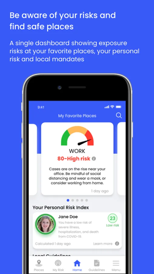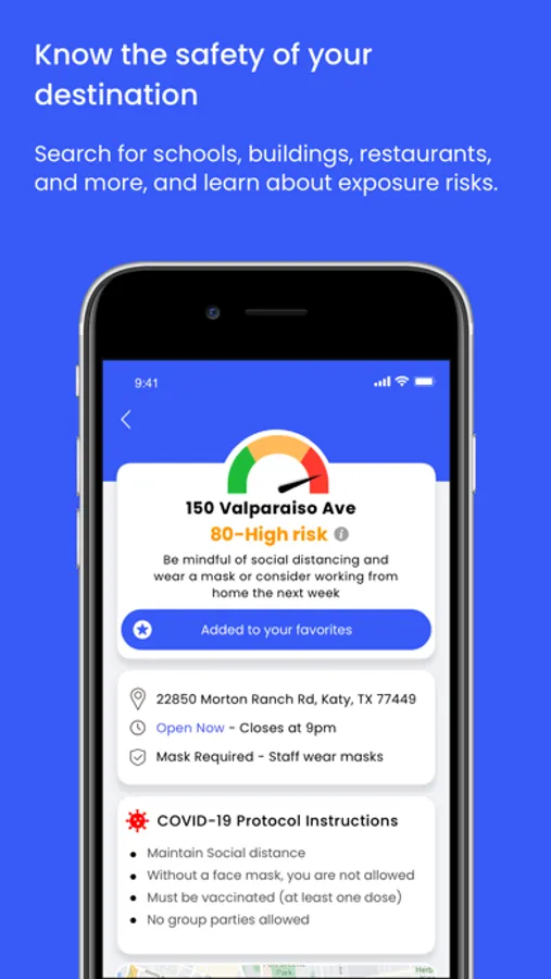 Use the app’s real-time risk monitor to prevent contact with pathogens and protect the people closest to you.