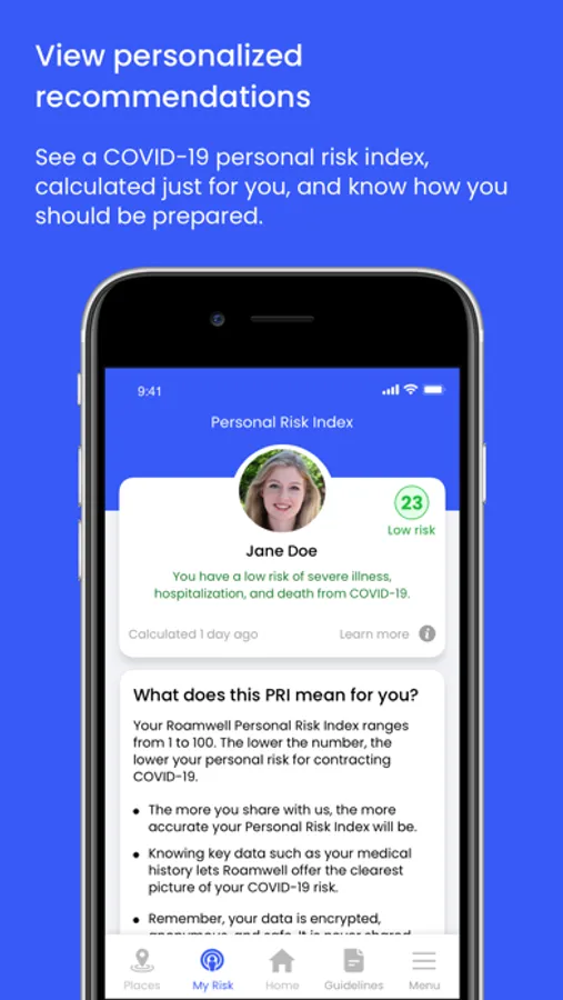 Get real-time visibility into hyperlocal health threats from pathogens, so you can make smart choices about what you and your family do, and where you go. Stay mindfully mobile with Roamwell, which puts personalized risk assessments at your fingertips. Know the safest places to visit, the best times of day to go, and what your risk level is based on your personal health information (It’s entirely up to you how much information to add to your app.)