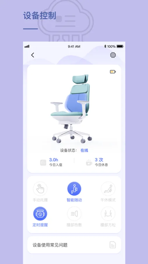配套贝氪智能办公椅,用产品的功能性来干预久坐中引起的健康问题。让椅子匹配每个人的体型和坐姿习惯,除了对腰背进行有效的支撑外,还可对坐姿进行有效的监测和管理,从而对久坐引起的职业病进行有效预防和缓解,带来工作效率的提升。