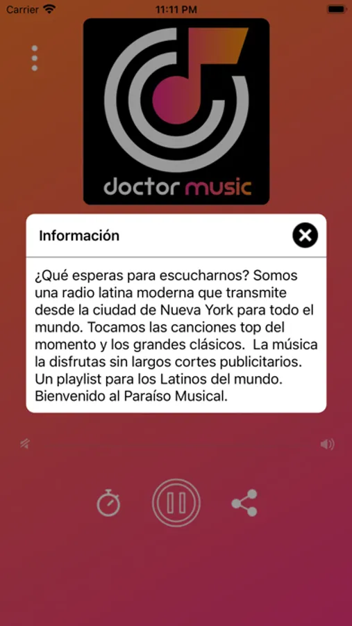 ¿Qué esperas para escucharnos? Somos una radio latina moderna que transmite desde la ciudad de Nueva York para todo el mundo. Tocamos las canciones top del momento y los grandes clásicos. La música la disfrutas sin largos cortes publicitarios. Un playlist para los Latinos del mundo. Bienvenido al Paraíso Musical.