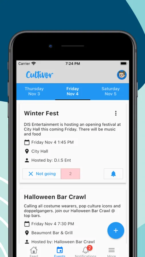 cultivor is a solo social media project built on a small scale and intended for students to connect and share content with others. explore the app to see content created by others and or post your own. get access to additional resources and events created by your community or host your own for others to attend. allow notifications to get alerts about other users' content and events.