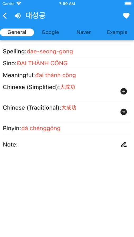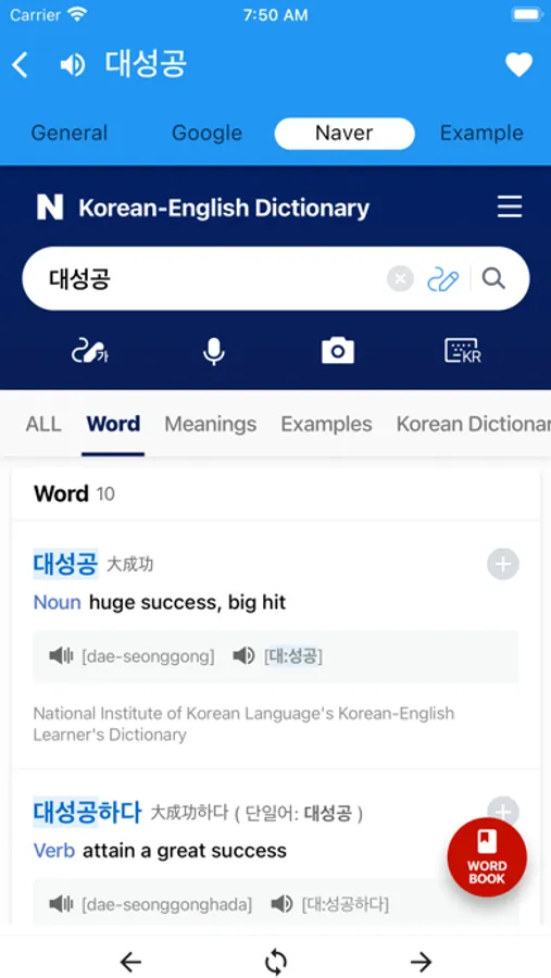 * The application supports meaning, transcription, pronunciation (including Patchim stone)