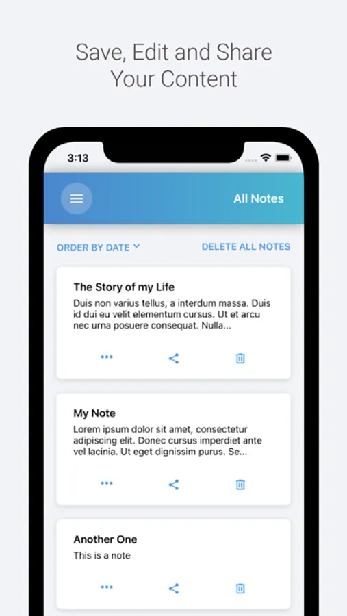 Your content will be saved as notes that you can easily copy and share. This app can be used as a notepad as well (think of it as writing app with word count).