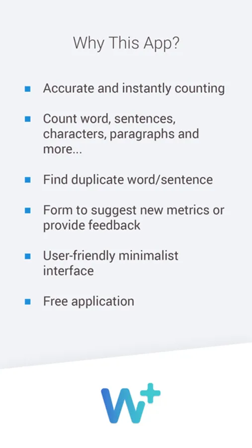 This Word counter application offer also advanced text statistics for premium users. However, our goal was to do something accessible at affordable prices but also an app that you can enjoy for free. That why main statistics such as word and sentence counter, number of characters, paragraph count are available for free. In addition, any free user can save up to two notes.