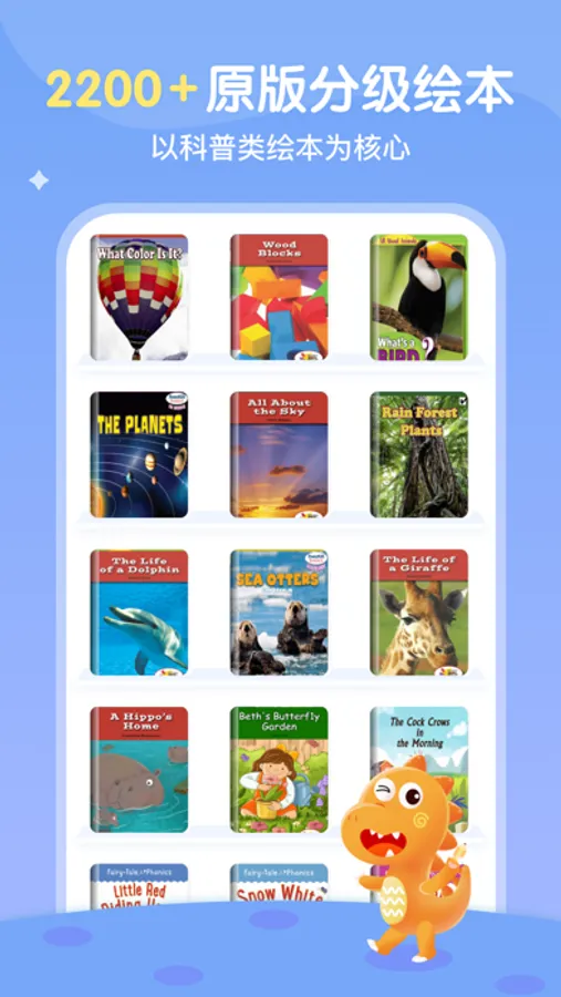 内容包罗万象,涵盖生活认知、人际交往、品德品格、科普百科、想象幻想、人文艺术等主题,及经典童话、伊索寓言、名著小说等各个方面的内容。拥有100+主题。不仅是语言的学习更是知识的获取。