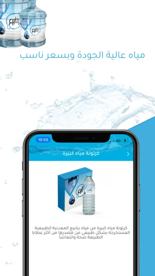 Ynabeaa contains all water products in all sizes, gallons, cartons. All you have to do is download the application and browse all the products and then place an order The product you want and we will deliver it to any place you want, whether home, mosque, office, or otherwise.