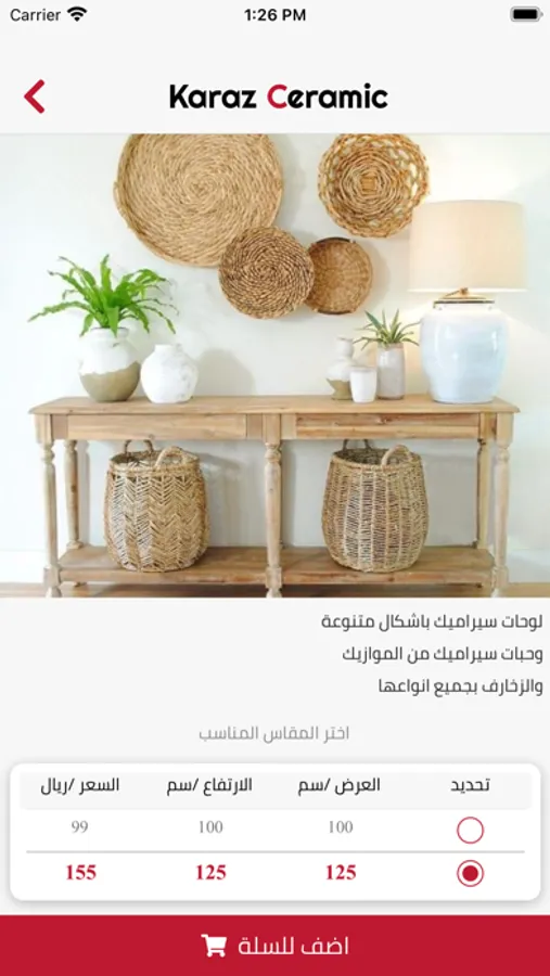 يمكنك اختيار لوحة او مقاس مناسب لنقوم بطباعته على السيراميك