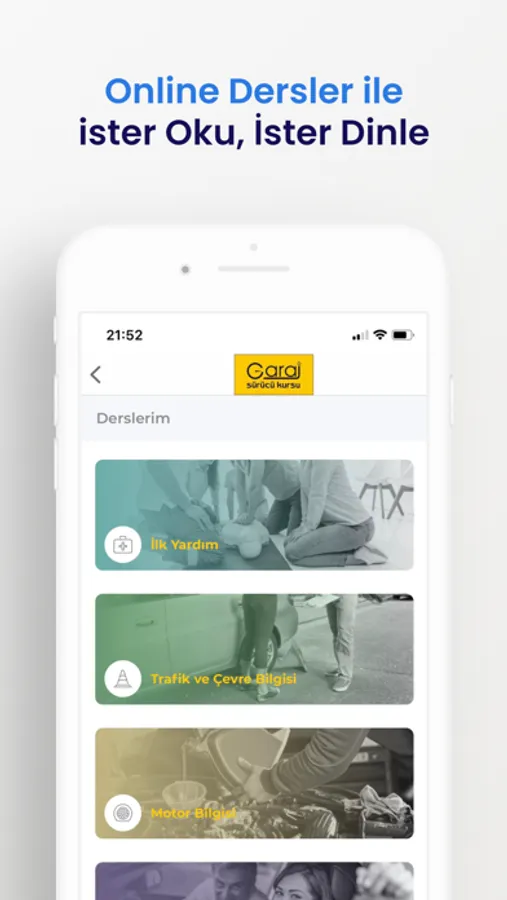 Garaj Sürücü Kursu Mobil Uygulamamız ile;