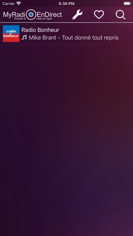 Vous trouverez ci-dessous une liste non exhaustive des radios que vous avez à votre disposition. Si vous ne trouvez pas votre station de radio préférée, cliquez sur l'icône de recherche dans l'en-tête de l'application et tapez son nom pour la retrouver. Le moteur de recherche prend également en charge la recherche vocale dans le cas où il vous serait impossible de taper.