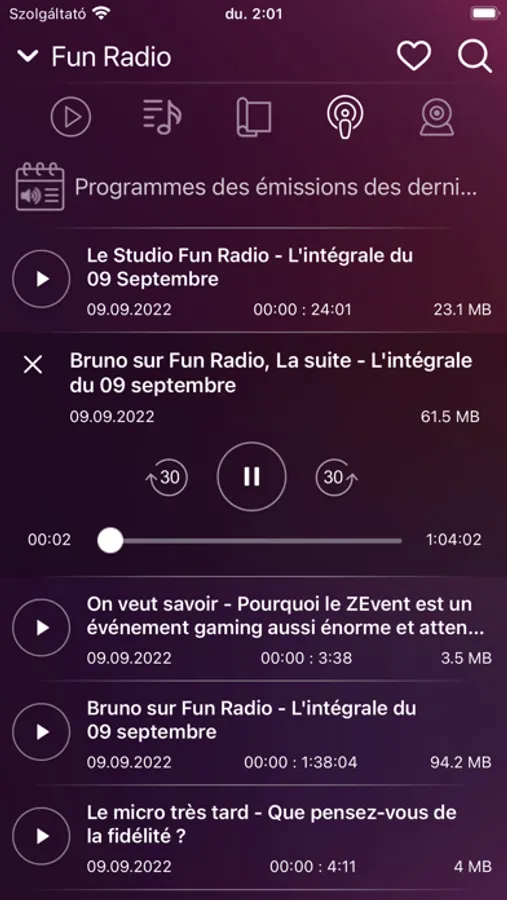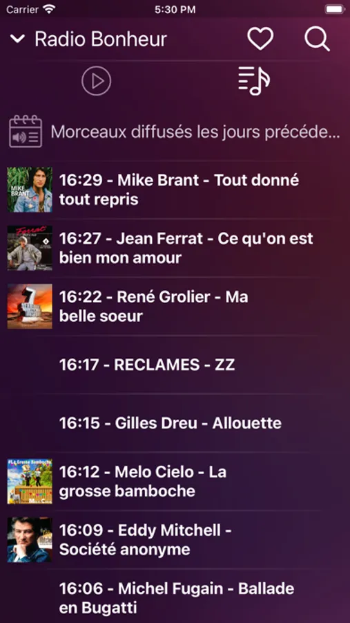 Pendant l'écoute, vous pouvez voir quelle chanson est en cours de diffusion, regarder l’image de couverture associée à la chanson et découvrir quelles chansons étaient disponibles pendant le mois écoulé. De plus, certaines radios ont également une grille des programmes qui vous permet de voir une semaine à l'avance quelles émissions seront diffusées. Certaines radios vous permettent non seulement d'écouter leur programmes, mais aussi de les regarder par webcam. Cette fonction, vous la trouverez sur la sous-page de la radio concernée dans l'en-tête.