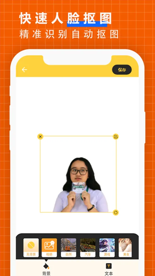 【人像抠图】上传人像照片智能抠图,运用最新的AI技术,精确的识别功能,帮你轻松实现抠图,生成透明背景图换背景;还能生成您想要的证件照、职业照、半身照。