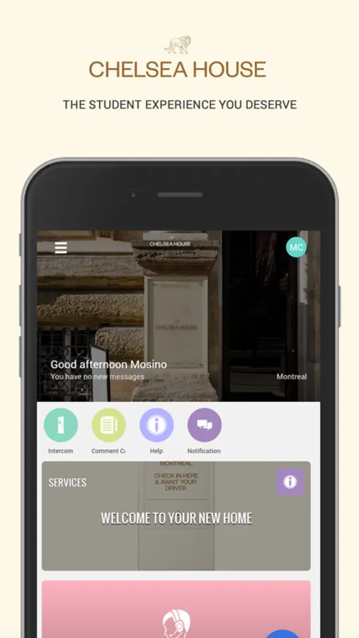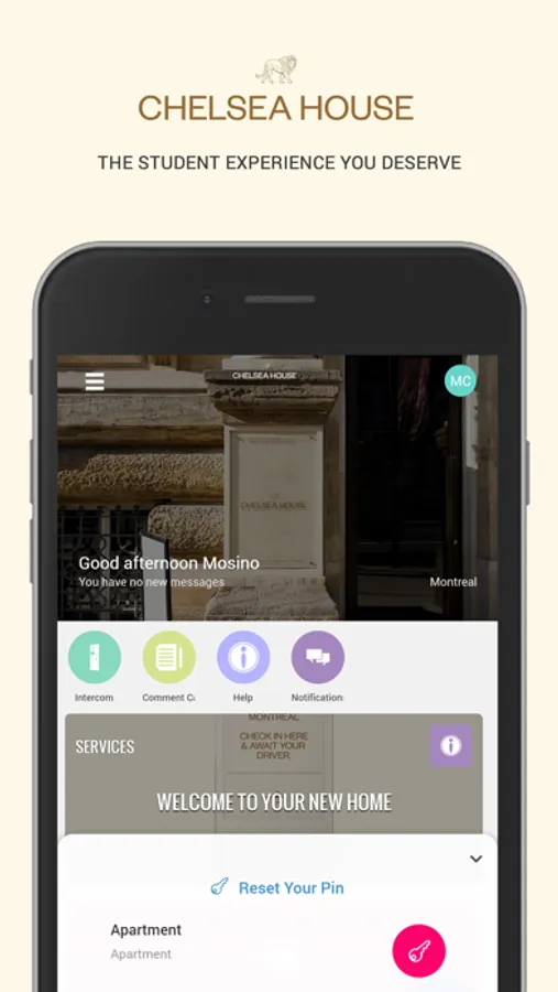 Chelsea House application offers various tools for their student housing, located in Montreal, QC, Canada. The list includes: